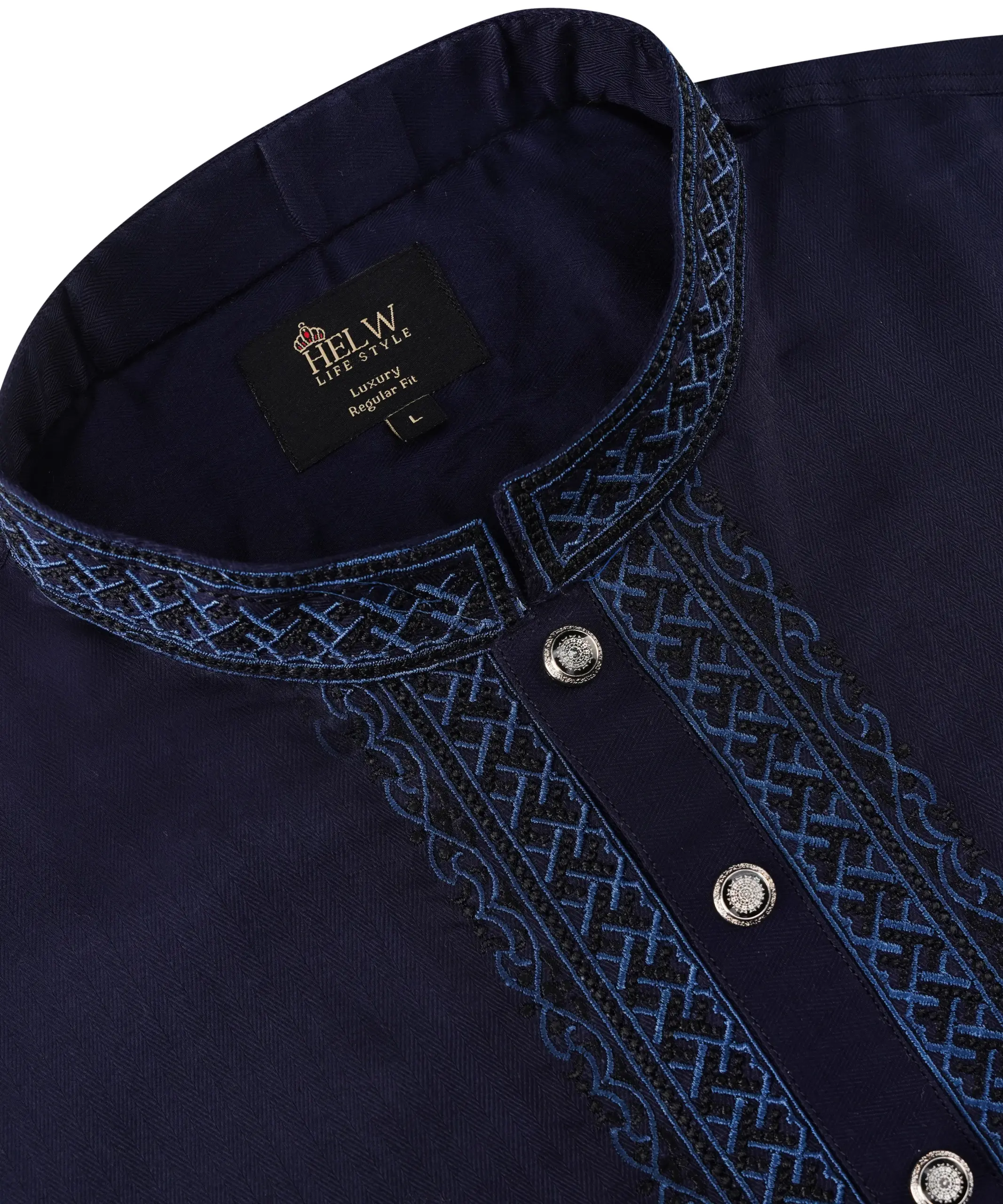 China Herringbone Cotton Panjabi- Navy Blue