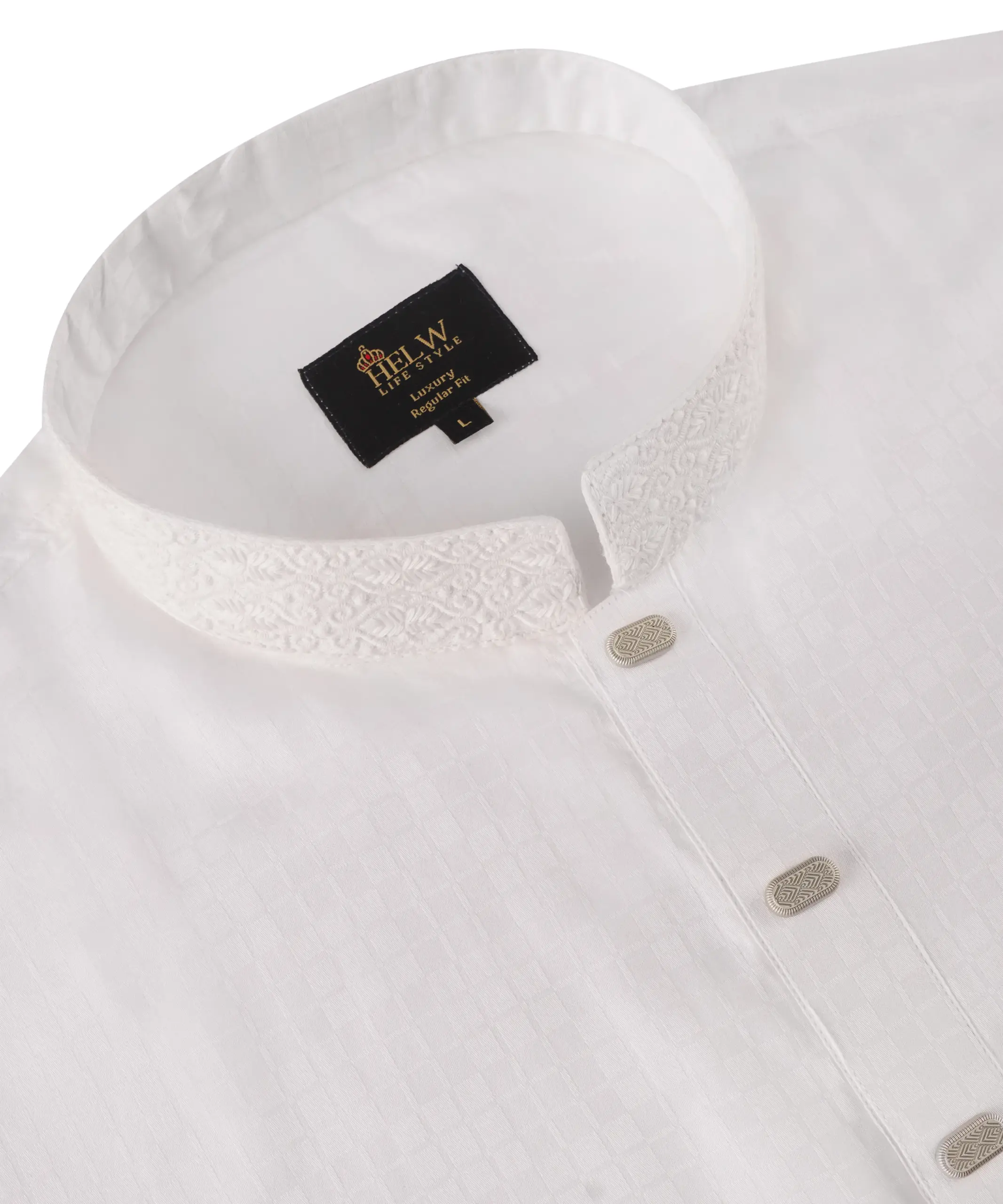 Be the first to review “Indian Cotton Jequard Panjabi- White”